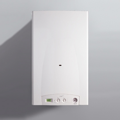 Настенный двухконтурный газовый котел Unical серии EVE 05, имея простые конструкцию и принцип работы, представляет собой эволюционную технологию, разработанную для удобства пользователя .Особенности Простой мультифункциональный ЖК дисплей, видимый даже в темноте, отображает температуру отопления и ГВС, блокировку в связи с отсутствием пламени, режимы работы, режим ожидания (standby) и диагностику 11 видов неисправностей.Электронный розжиг с тройным циклом зажигания пламени, обеспечивает надежность в любых климатических условиях.Постоянная модуляция газа, управляемая микропроцессором, как в режиме отопления, так и в режиме приготовления ГВС при помощи двух контрольных датчиков, которые определяют заданные установки с очень высокой точностью.Теплообменник для ГВС из нержавеющей стали марки AISI 316 L состоит из 12 пластин. Применение данного теплообменника обеспечивает высокую площадь теплообмена, что при одинаковых температурах воды и необходимом ее количестве позволяет котлу работать в более низком температурном режиме и получать постоянную температуру воды в режиме ГВС.Номинальный потребляемый ток 3.15 А.