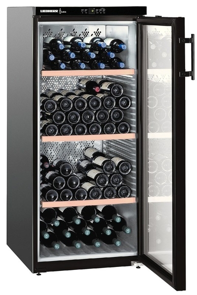 Винный шкаф Liebherr WKb 3212, объем 314 л (164 бутылок), монотемпературный, управление электронное, перенавешиваемые двери, энергопотребление класс А, цвет черный, высота 135 см